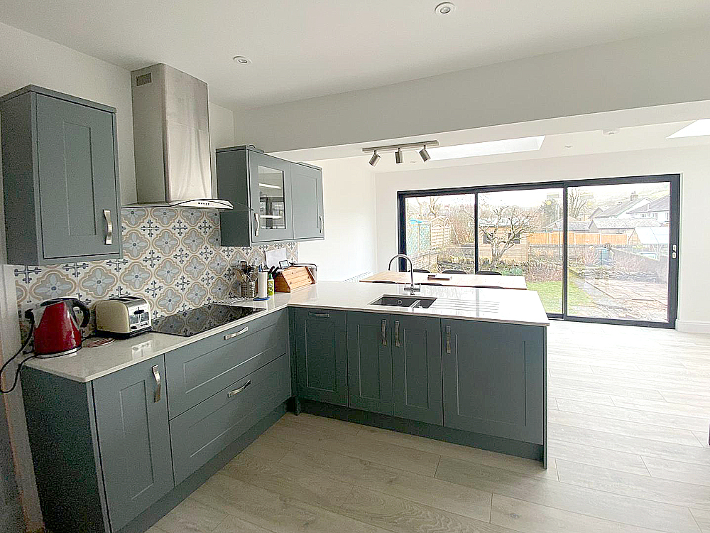 There are electric radiators throughout the house and large sliding doors in the kitchen, which give access to the garden.